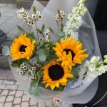 Ваксфлауэр – 2 шт.Дельфиниум – 2 шт.Эвкалипт – 2 шт.Подсолнух – 3 шт.Упаковка дизайнерская – 2 шт.