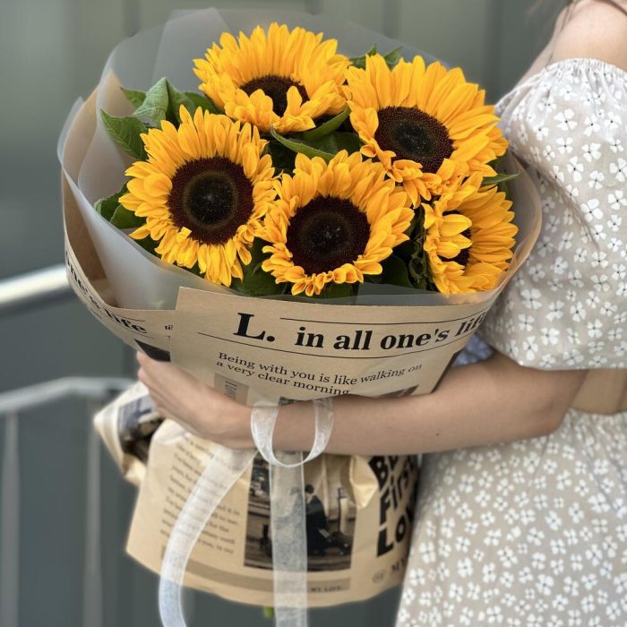 Букет Солнце из 5 подсолнухов