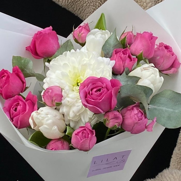 Категорий: Кустовые розы, Розы, Тюльпаны, Хризантемы, Хризантемы кустовые, Эвкалипт