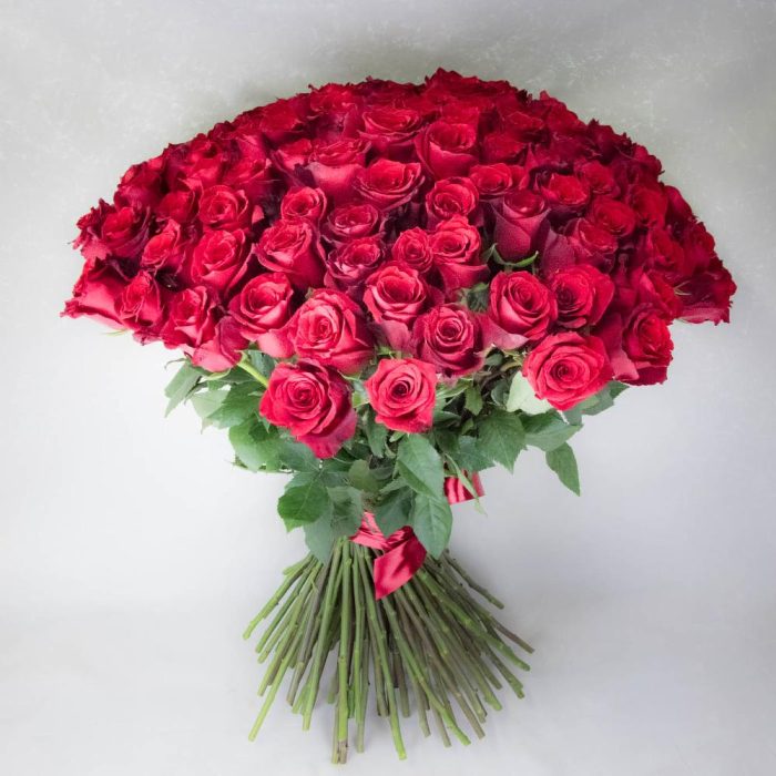 Метки: 101 роза, Красные розы, от 5000 руб, Роза 70 см