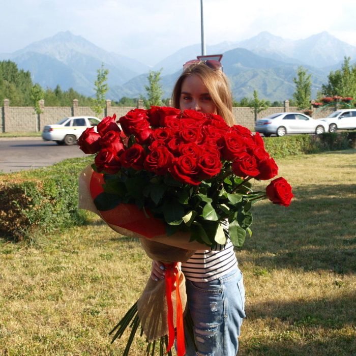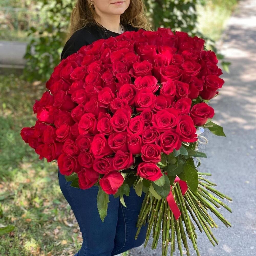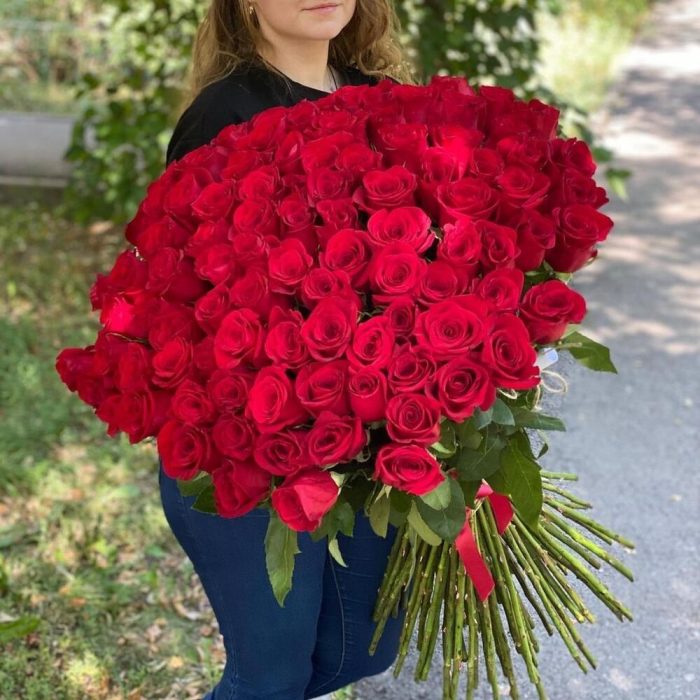 Роза эквадор 90 см – 101 шт. Упаковка мешковина – 1 шт.