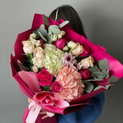 “Эвкалиптическая роскошь” гортензия и пионовидная кустовая роза