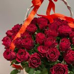 Метки: 101 роза, от 5000 руб, цветы в корзине
