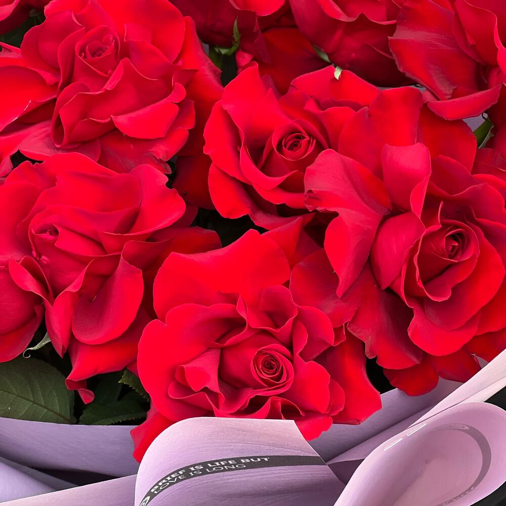 Роскошные ароматные красные розы в стильном оформлении порадуют ваших близких по любому поводу