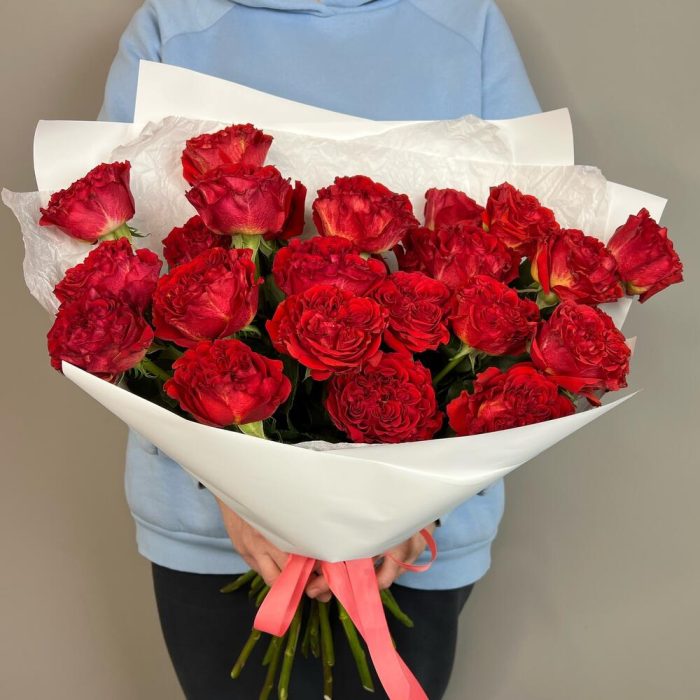 Роза – 23 шт.Лента атласная – 1 шт.Упаковка дизайнерская – 1 шт.комплимент от polyanka – 1 шт.