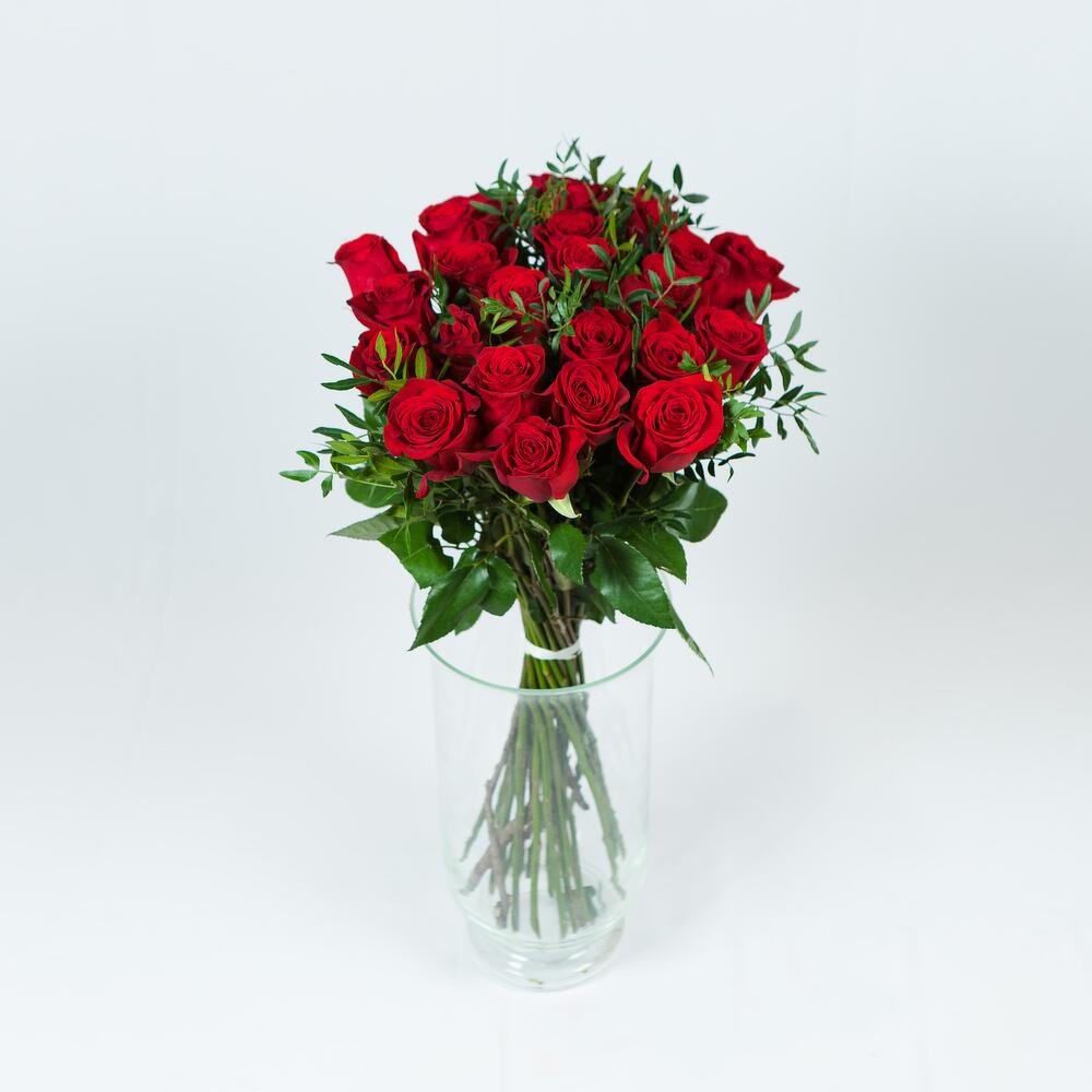 Роза эквадор 50 см – 25 шт.фисташка зелень – 4 шт.Лента атласная – 1 шт.Пленка прозрачная – 1 шт.