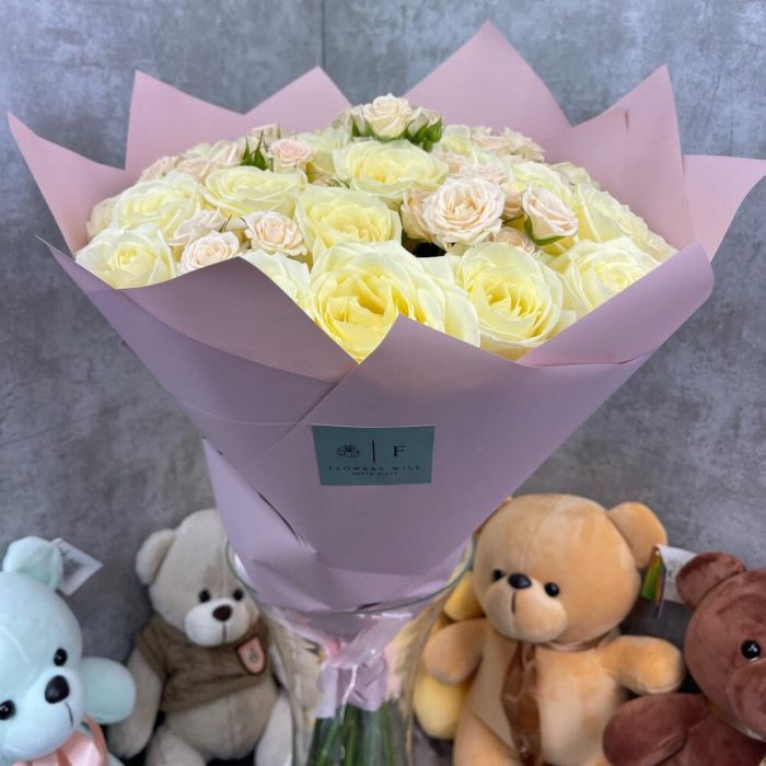 одноголовые розы – 25 шт.Кустовая роза – 6 шт.