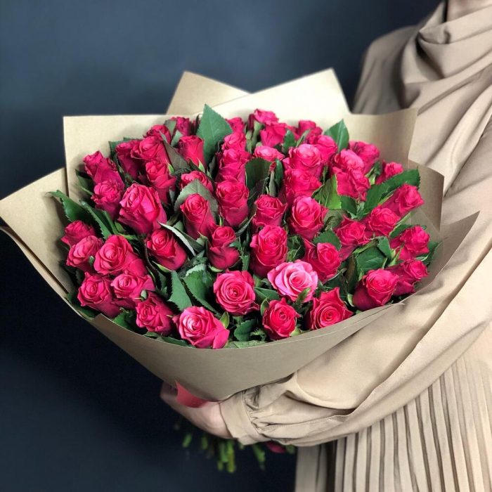 Роза – 51 шт.Крафт упаковка – 3 шт.