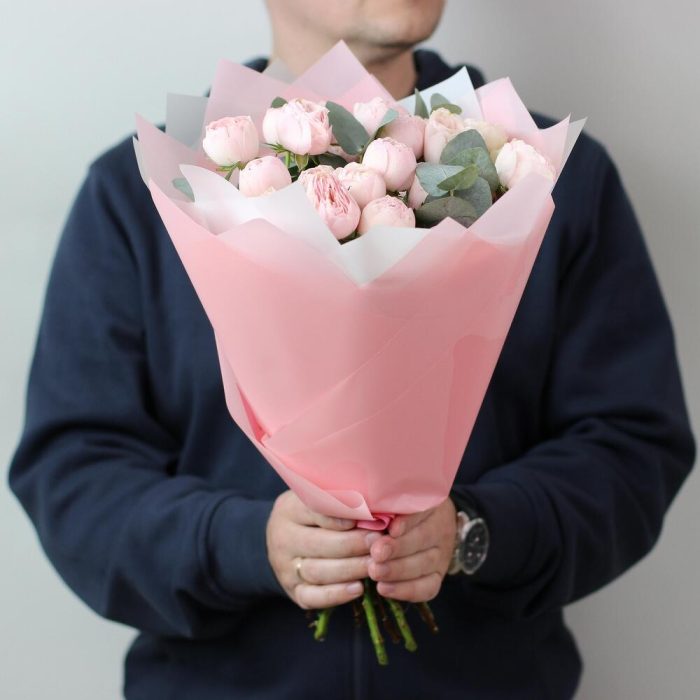 7 кустовых пионовидных роз мэнсфилд парк с эвкалиптом. Букет 22 KimFlo