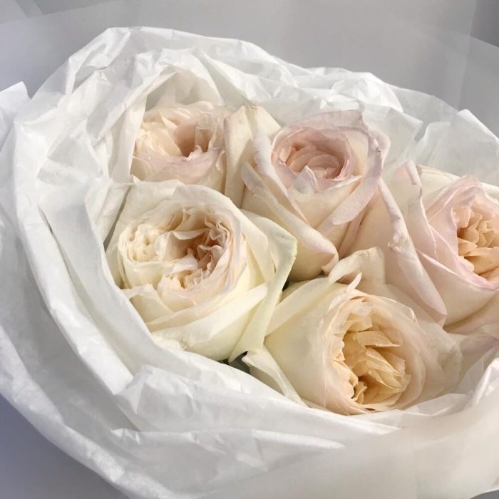Лента атласная – 2 шт.Тишью – 3 шт.Аквабокс – 1 шт.Средство для продления жизни цветов – 1 шт.Карточка для подписи – 1 шт.Матовая упаковка – 2 шт.роза пионовидная вайт o’hara ароматная – 5 шт.чек лист по уходу за цветами – 1 шт.