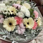Авторский букет с герберами и хлопком