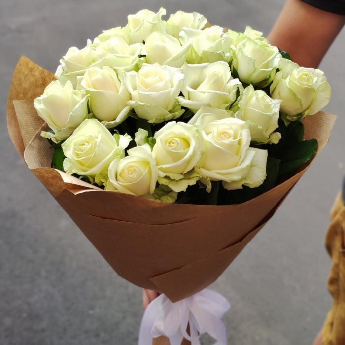 роза украинская белая – 19 шт. бумага крафт – 1 шт.