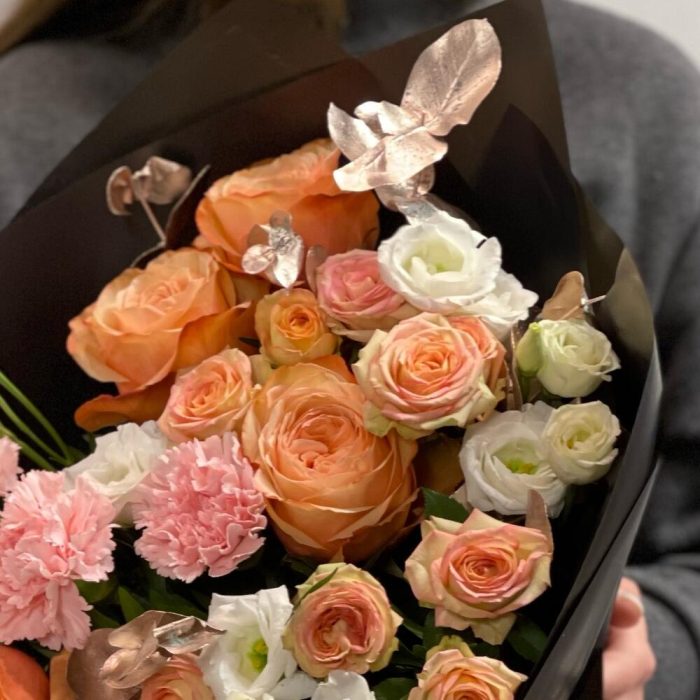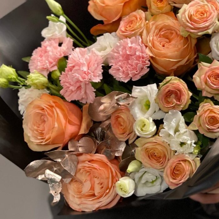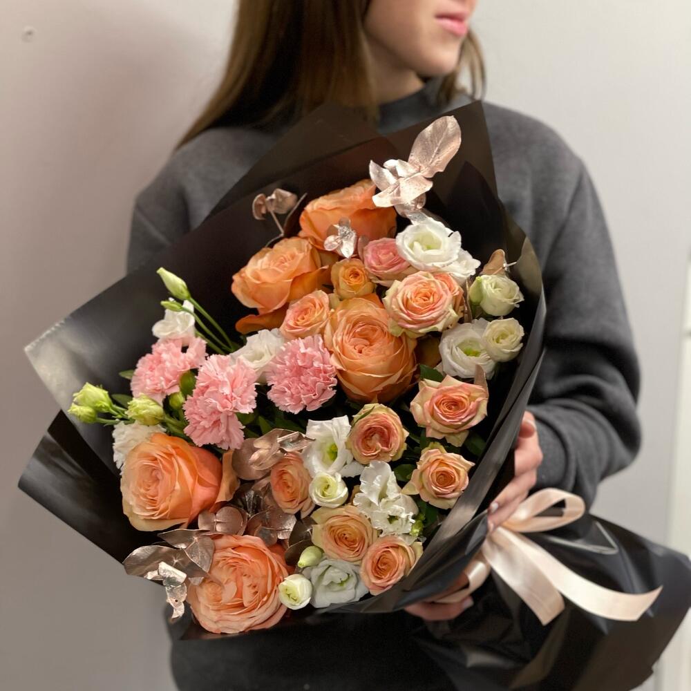Гвоздики, Кустовые розы, Лизиантусы, Пионовидные розы, Розы