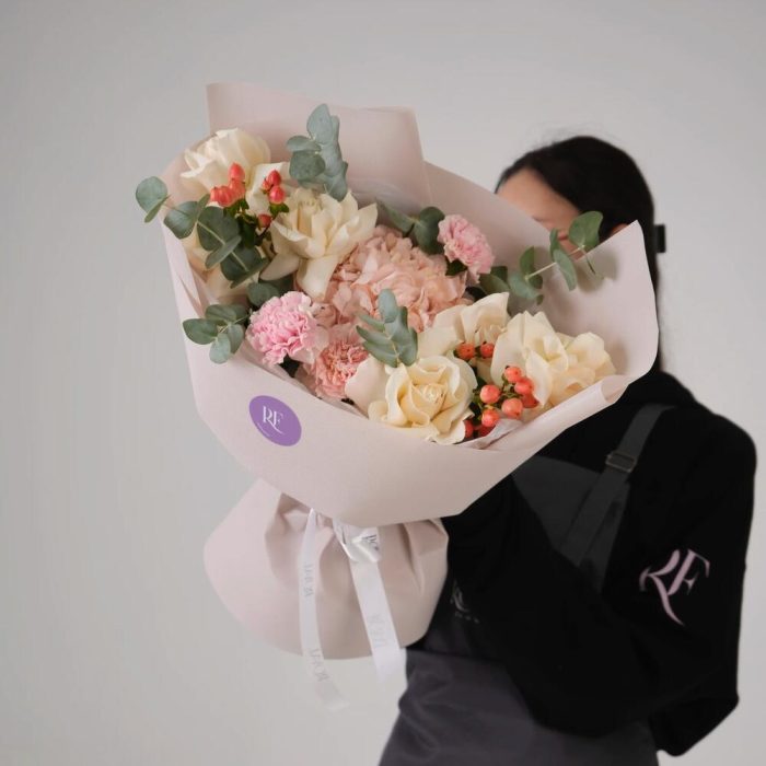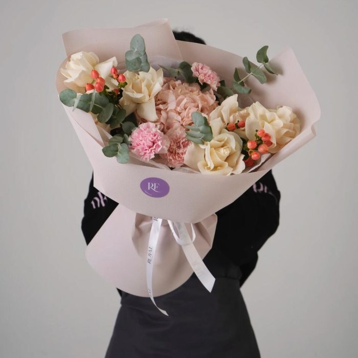 Гвоздики, Кустовые розы, Пионовидные розы, Розы