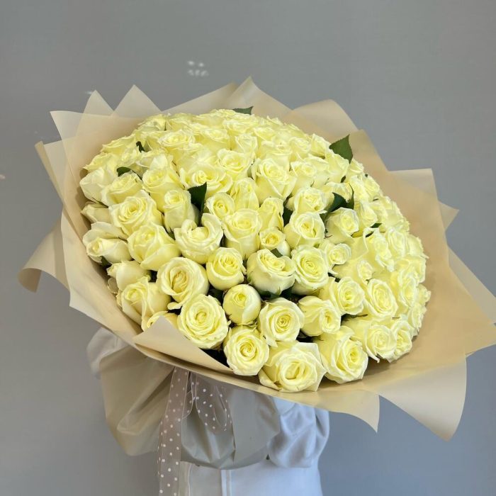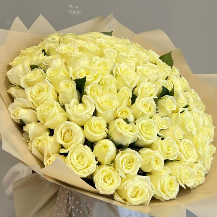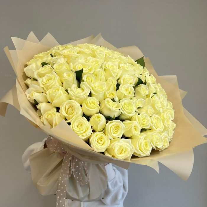 Лента атласная – 2 шт.Роза 70 см – 101 шт.Упаковка дизайнерская – 2 шт.