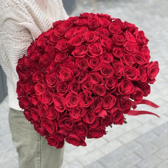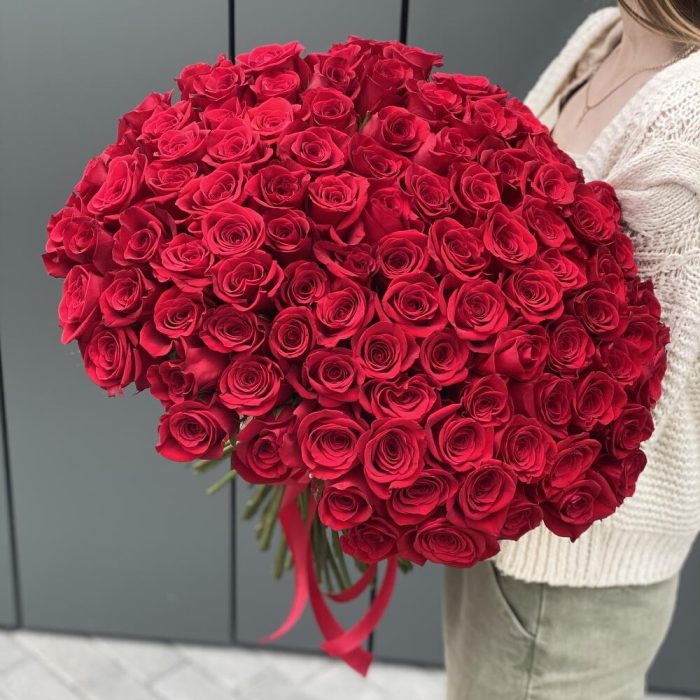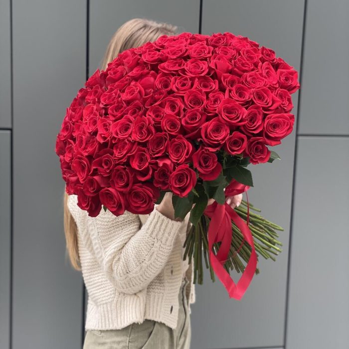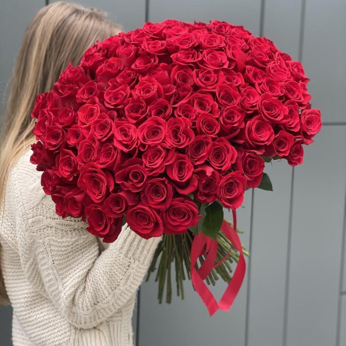 Метки: 101 роза, 14 февраля, Красные розы, от 5000 руб, Роза 50 см