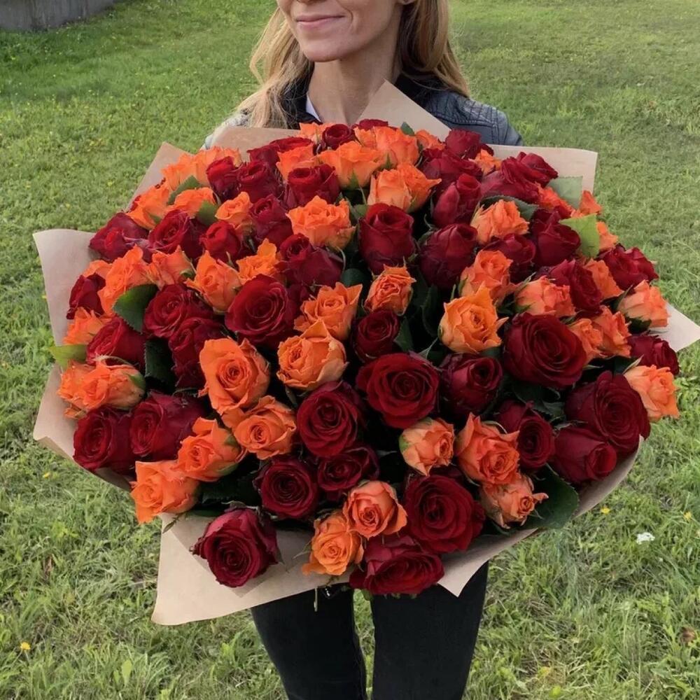 роза микс 70 см – 101 шт.упаковка крафт-бумага – 1 шт.