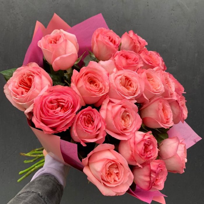 Букет из 21 пионовидной розы Пинк Экспрешн