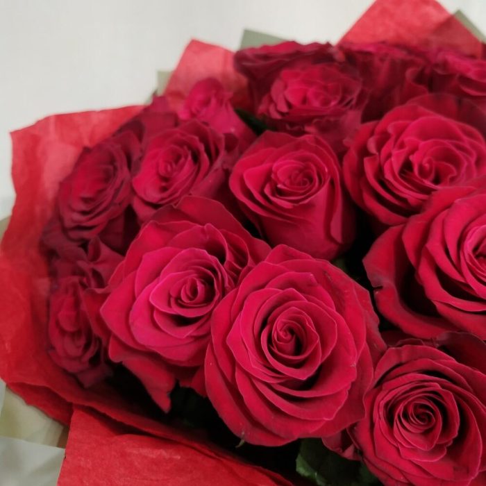 Лента атласная – 1 шт.Бумага – 1 шт.Тишью красное – 1 шт.роза кения – 25 шт.