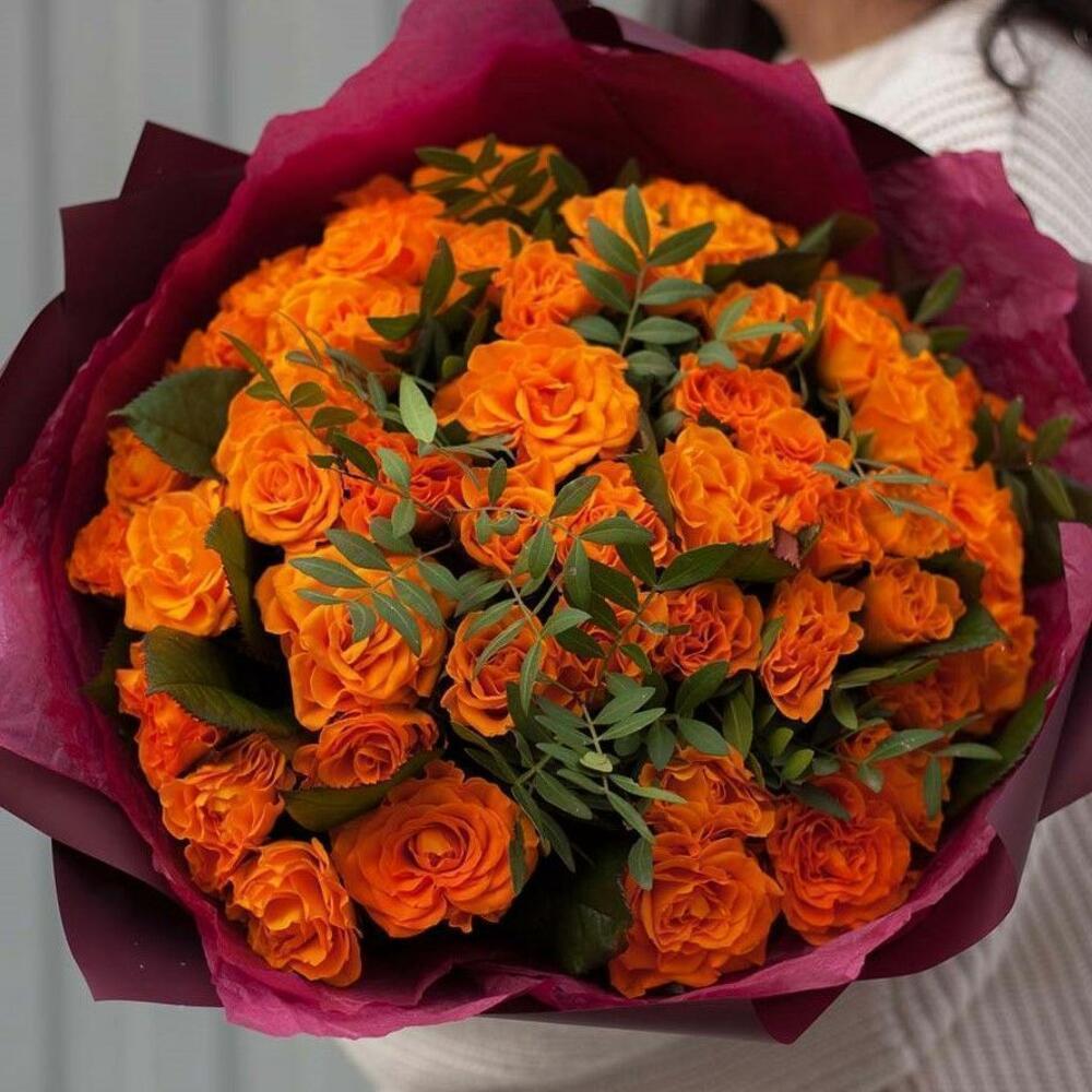 Букет из 51 оранжевой розы 35-40 см (Россия) с фисташкой