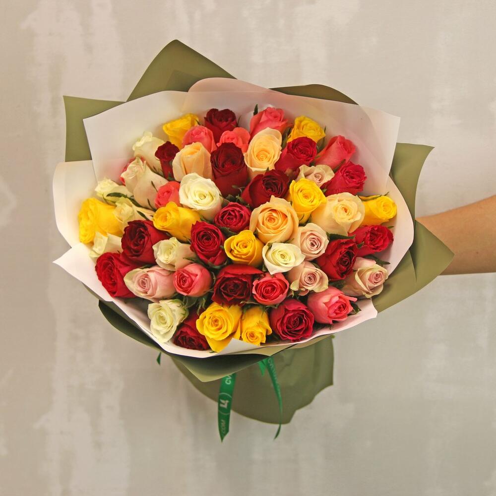 Букет из 51 роз микс 35-40 см (Кения) в упаковке
