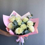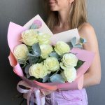 Это изысканный и стильный букет, который сочетает в себе элегантность белых роз с ароматными и декоративными листьями эвкалипта. Всегда свежие цветы. Доставка по Тбилиси бесплатная.
