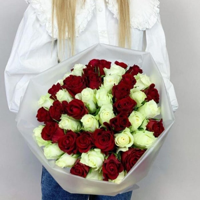 роза красная и белая кения 35-40 см – 51 шт.