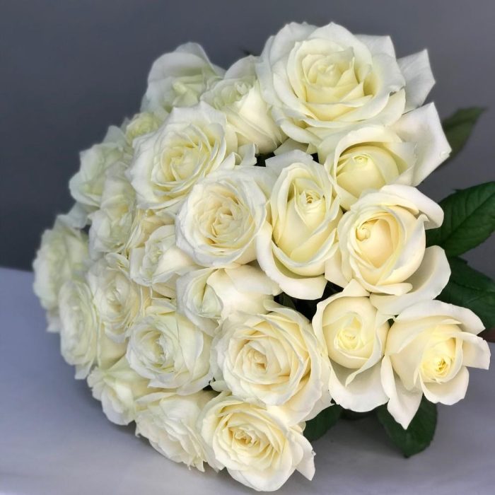 Классический букет из 25 белых роз можно подарить понравившейся девушки, также прекрасным поводом для данного букета будет первое свидание или подарок на свадьбу.