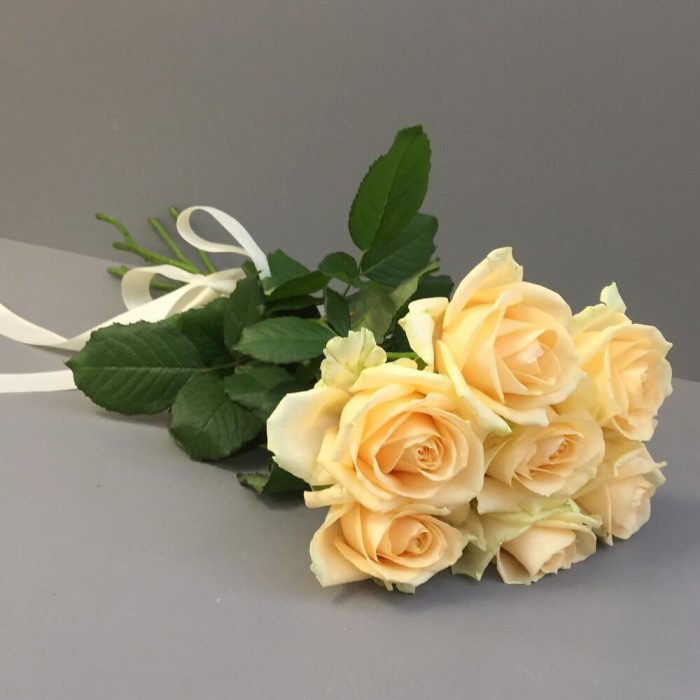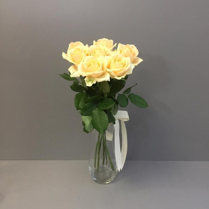 Роза аваланж пич 50 см – 7 шт.Лента атласная – 1 шт.Аквабокс – 1 шт.коробка транспортировочная – 1 шт.