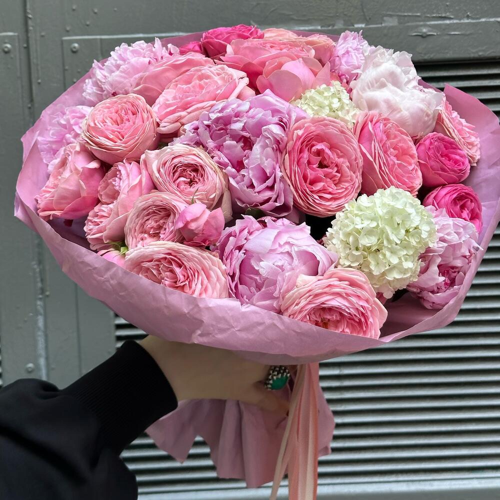 Букет из пионов и ассорти гортензий