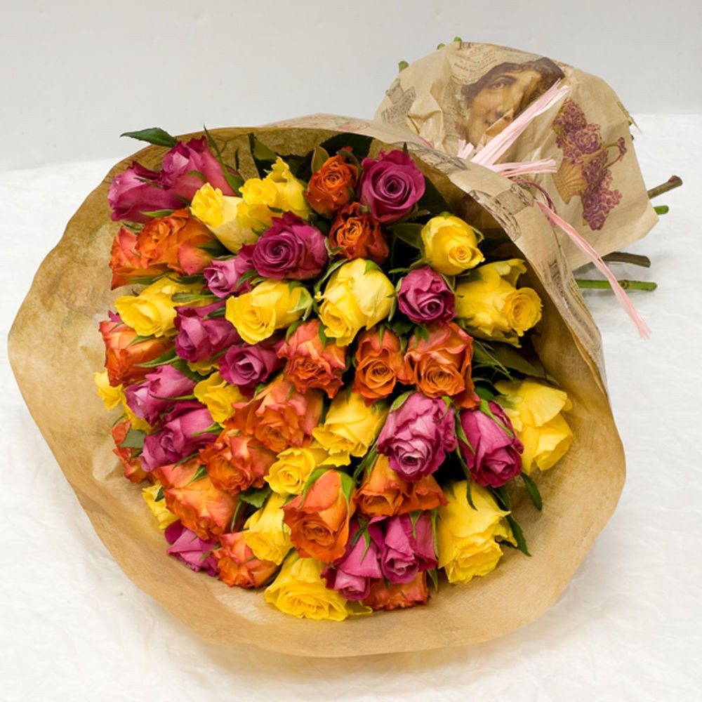 Роза Кенийская 40 см – 51 шт.Упаковка-крафт – 1 шт.Лента – 1 шт.