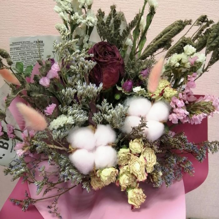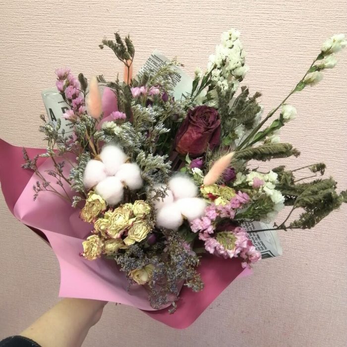 Букет из сухоцветов со станцией и хлопком