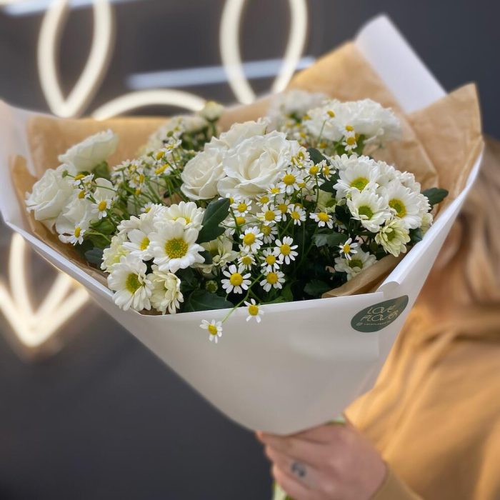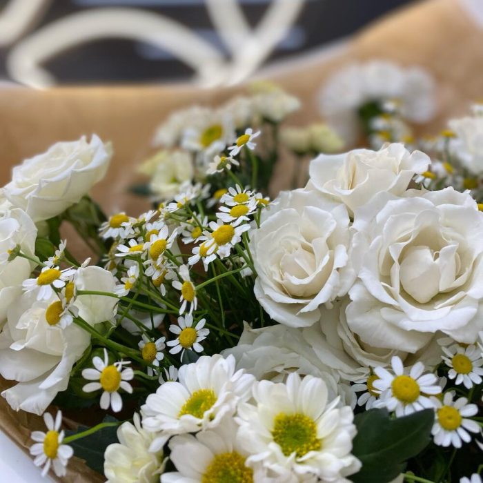 Букет кустовых роз и ромашки