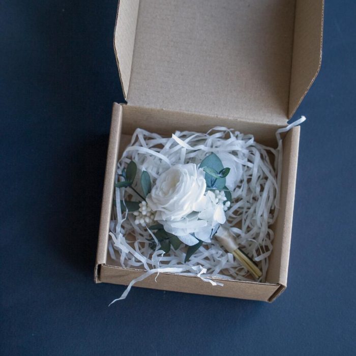 “Атлас☁️” – цветочная композиция с зефиром в деревянном ящике