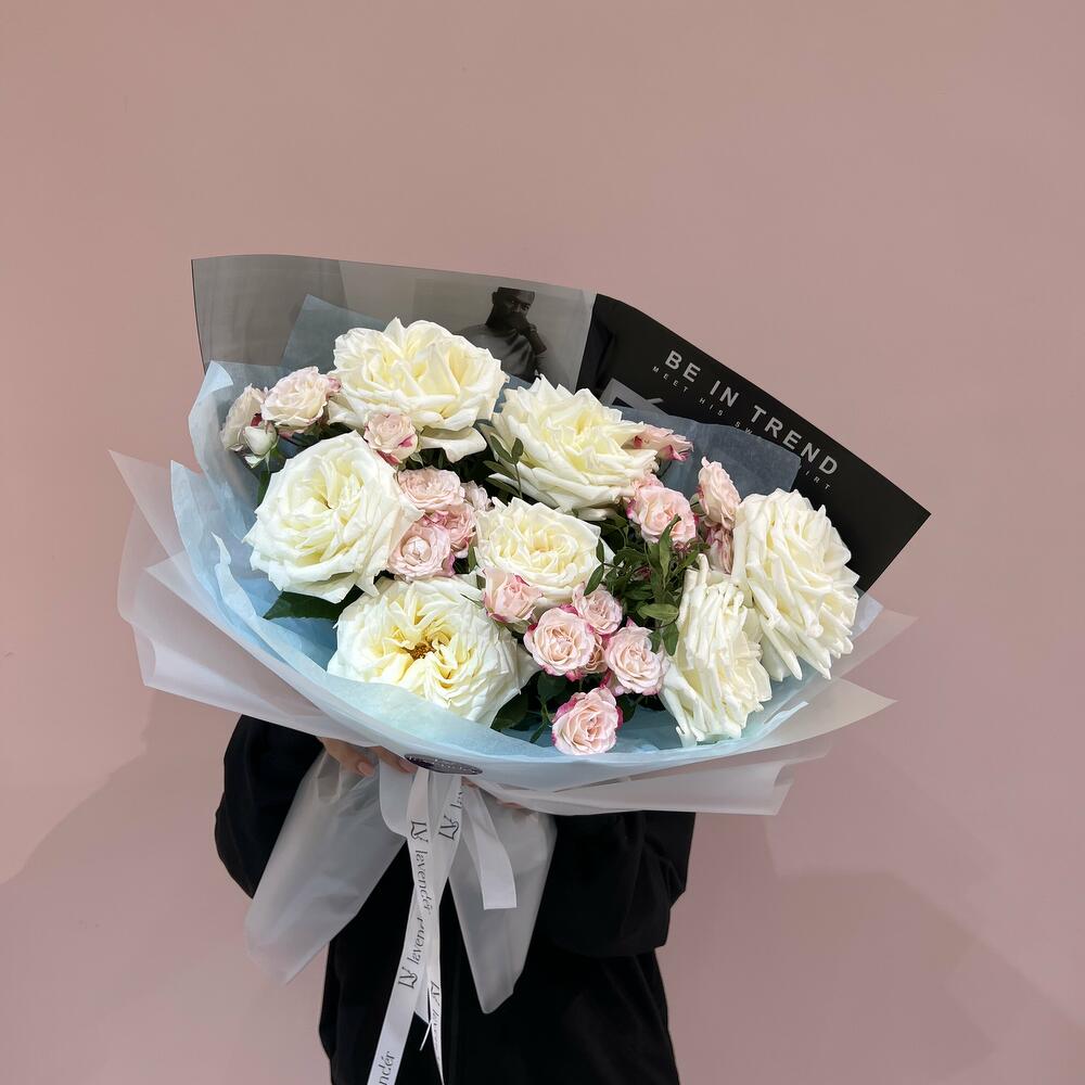 Альстромерии, Кустовые розы, Лизиантусы, Пионовидные розы, Розы, Ромашки