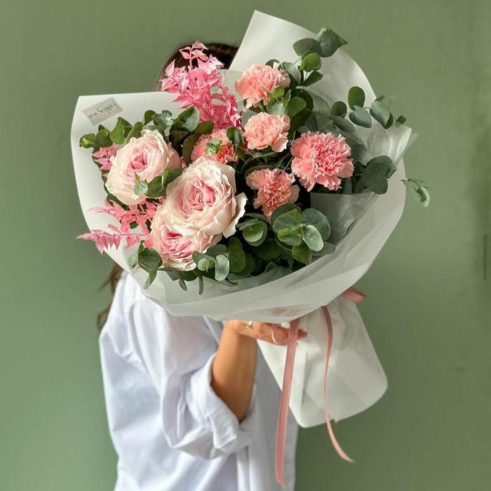 Категорий: Гвоздики, Диантус, Пионовидные розы, Розы, Сухоцвет, Эвкалипт