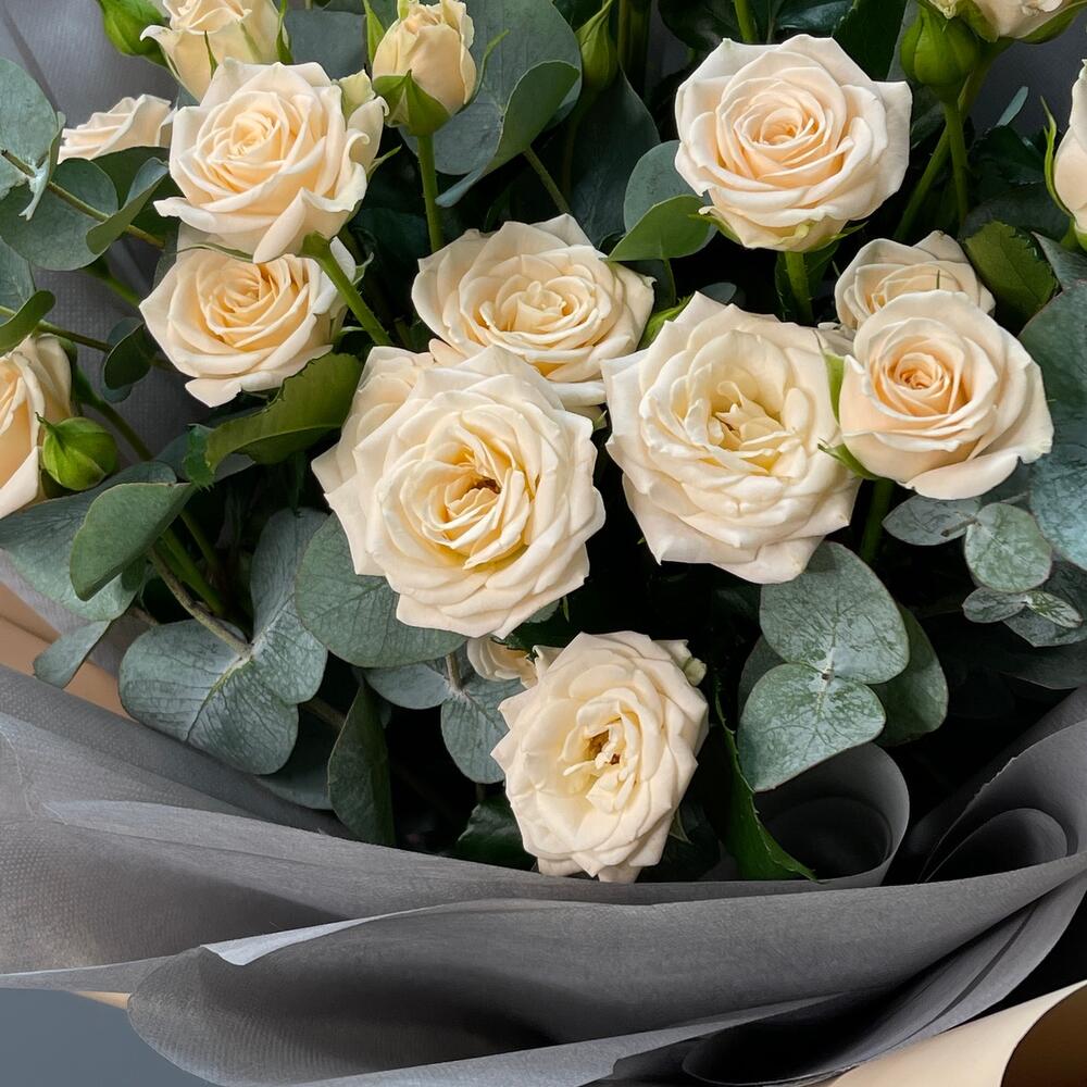Букет с кустовой розой «Кофейный Маршмэллоу»