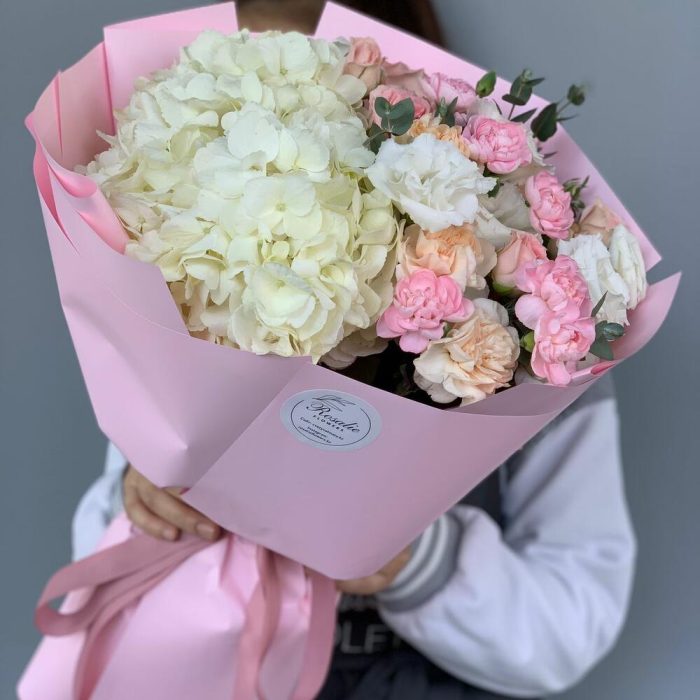Альстромерии, Кустовые розы, Лизиантусы, Пионовидные розы, Розы, Ромашки