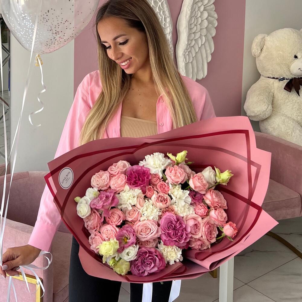 Категорий: Гвоздики, Кустовые розы, Лизиантусы, Пионовидные розы, Розы