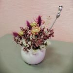 Роза кустовая сухоцвет – 1 шт.Лагурус (сухоцвет) – 3 шт.мак коробка – 2 шт.лимониум сухоцвет – 1 шт.Оазис флористический – 1 шт.Кашпо керамическое – 1 шт.