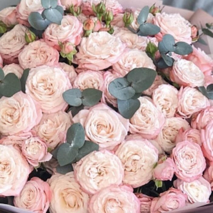 Альстромерии, Гвоздики, Кустовые розы, Лизиантусы, Розы, Хризантемы