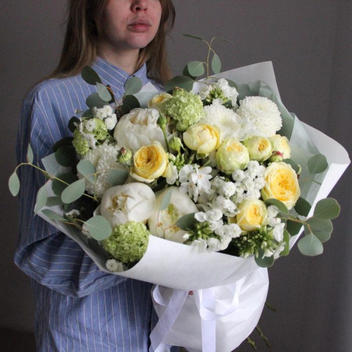 Лимонный щербет – Букет с пионами и пионовидными розами