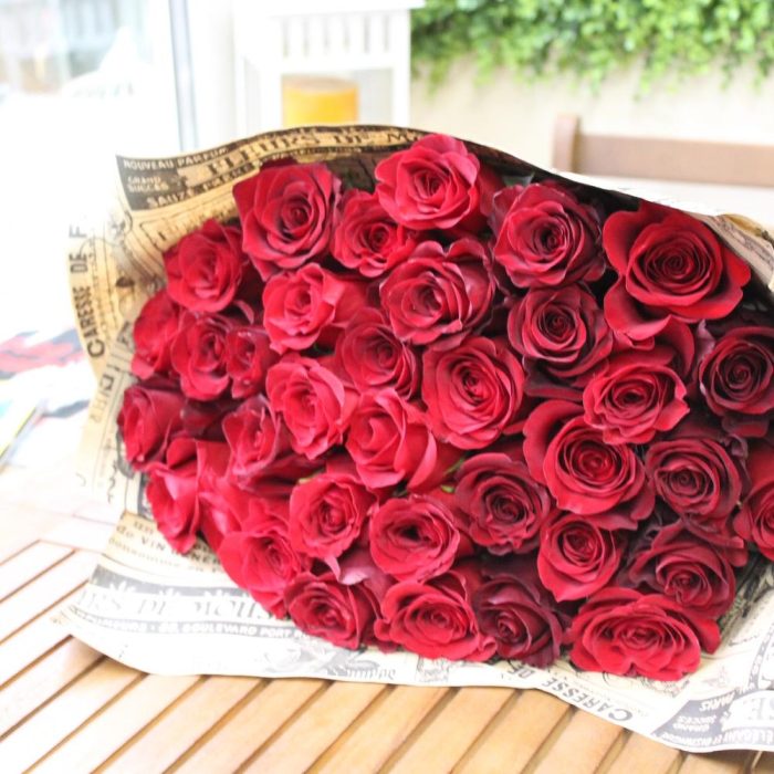Роза Эквадор Премиум – 35 шт.Крафт упаковка – 2 шт.Сердце – 1 шт.