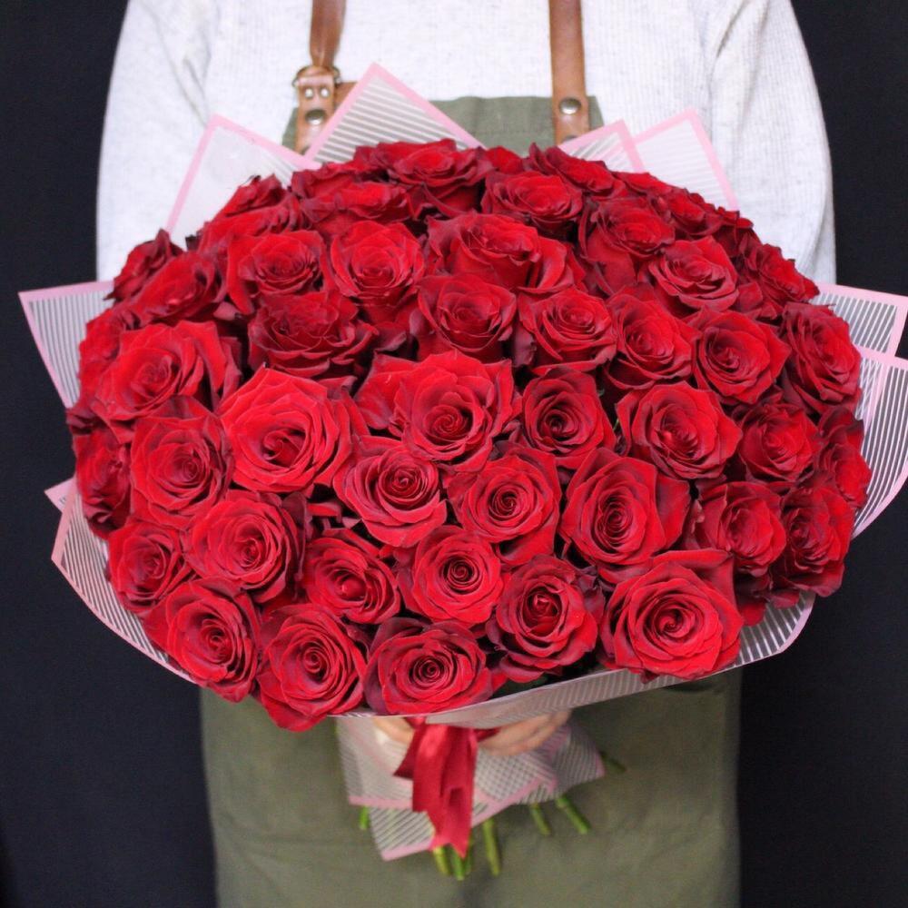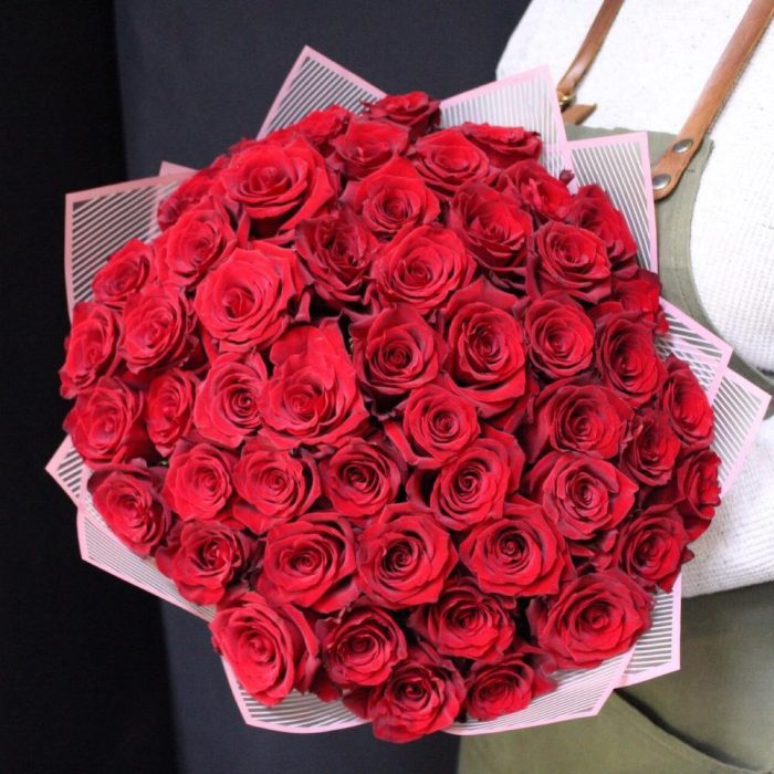 Роза Эксплорер – 51 шт.Пленка дизайнерская – 3 шт.Лента атласная – 2 шт.