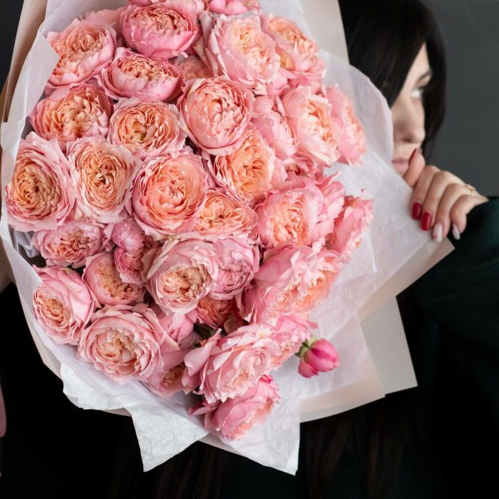 Монобукет из пионовидной розы «Фиолет»(Роза кустовая пионовидная Кения)