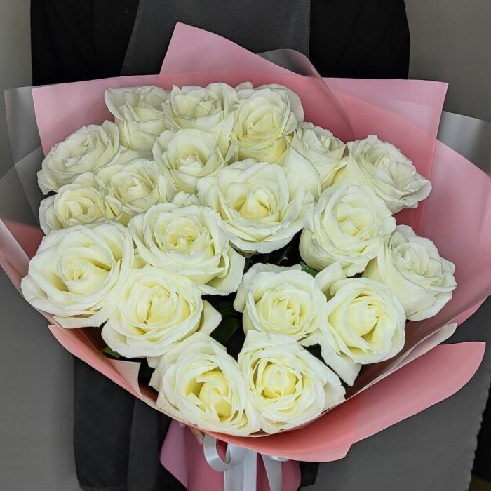 Монобукет из 19 белоснежных роз “Сентиментальность”