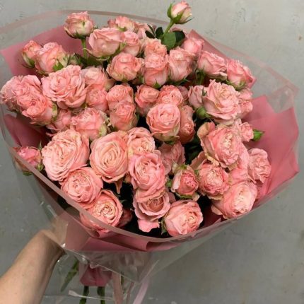 Нежный букет с кустовой розой в стильной дизайнерской упаковке