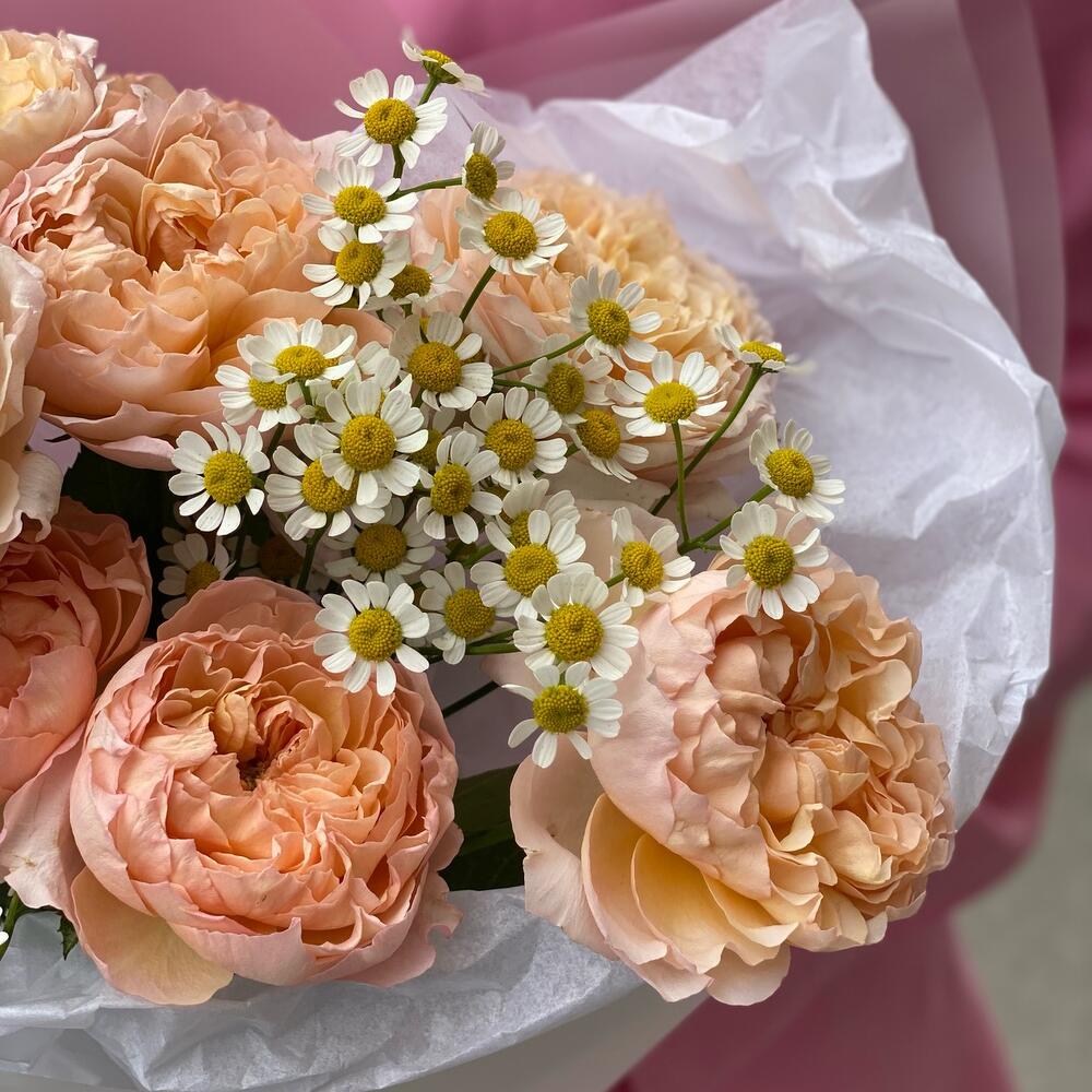 Альстромерии, Кустовые розы, Лизиантусы, Пионовидные розы, Розы, Ромашки