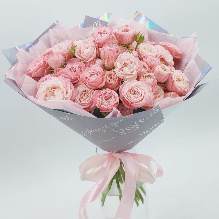 Упаковка дизайнерская – 1 шт.Роза кустовая пионовидная бомбастик – 15 шт.
