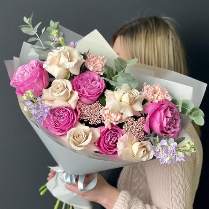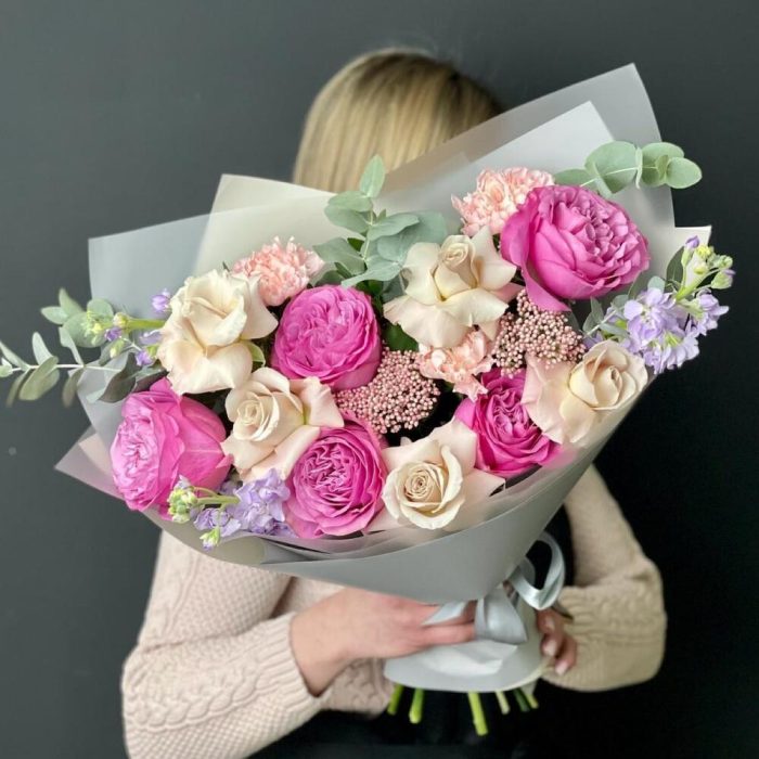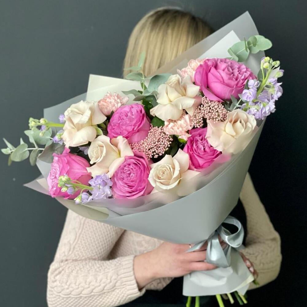 Гвоздики, Кустовые розы, Пионовидные розы, Розы